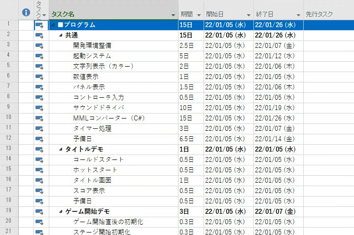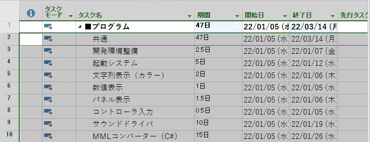 タスク名のカラム右端をダブルクリックすると、項目名がちゃんと入るサイズに調整されます。この辺りの操作はエクセルと同じですね。