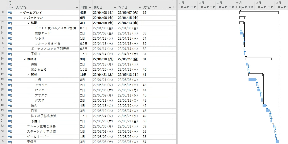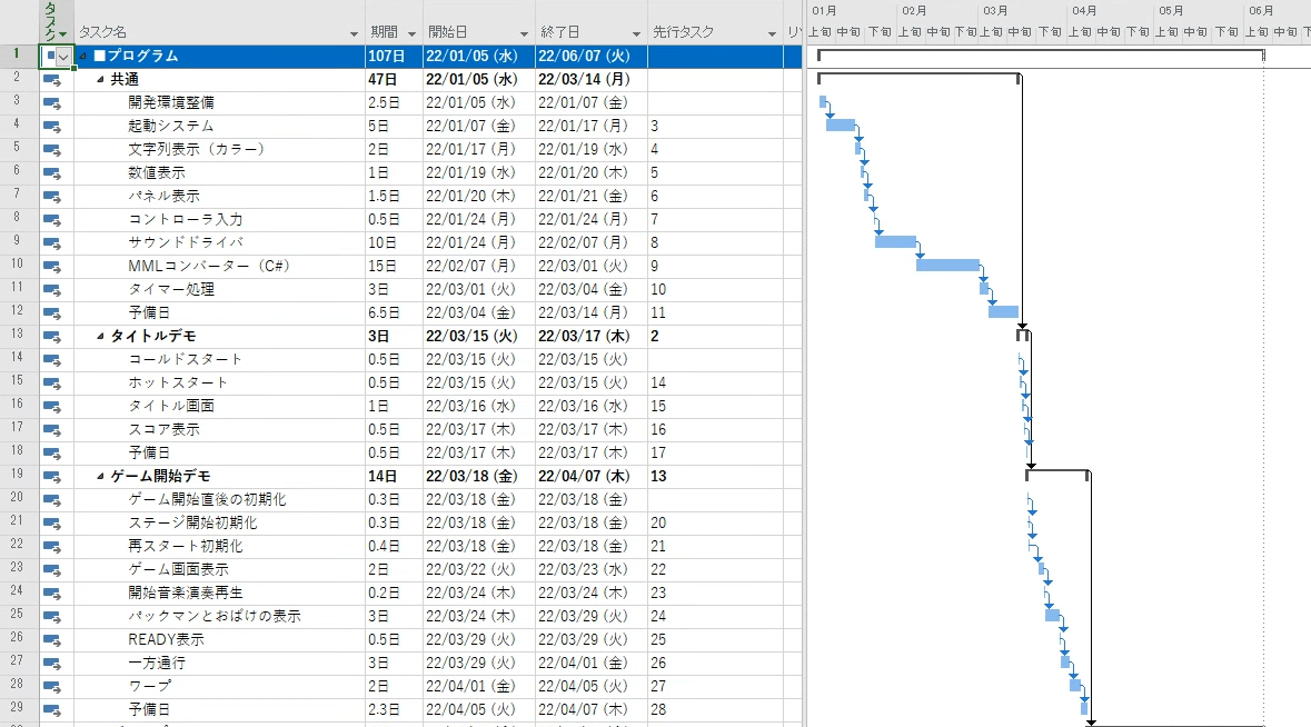 プロジェクト管理とは、最初にどれだけリスクを加味して予定を立てるかなのです。6ヶ月あれば出来そうな気がしますよね。まずはそれが大切です。その上で、ここからさらなるリスクを検討した上で、可能な限り無理なく予定を早める予定構築を…次回説明します。今回は基本的な操作説明だけで、めっちゃ長くなってしまいましたので、ここまで!