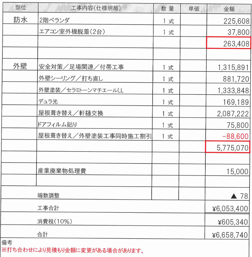 そして、今回、旭化成リフォームに完全に見切りを付けたのが、外壁塗装の見積りと風呂とリビングのリフォーム見積りに対する金額と対応でした。20年前、外壁塗装は 250万円だったと記憶しています。今回同じ塗装を見積り依頼したところ、なんと 600万円…。あまりに高すぎる。全く納得できかねる内容でした。
