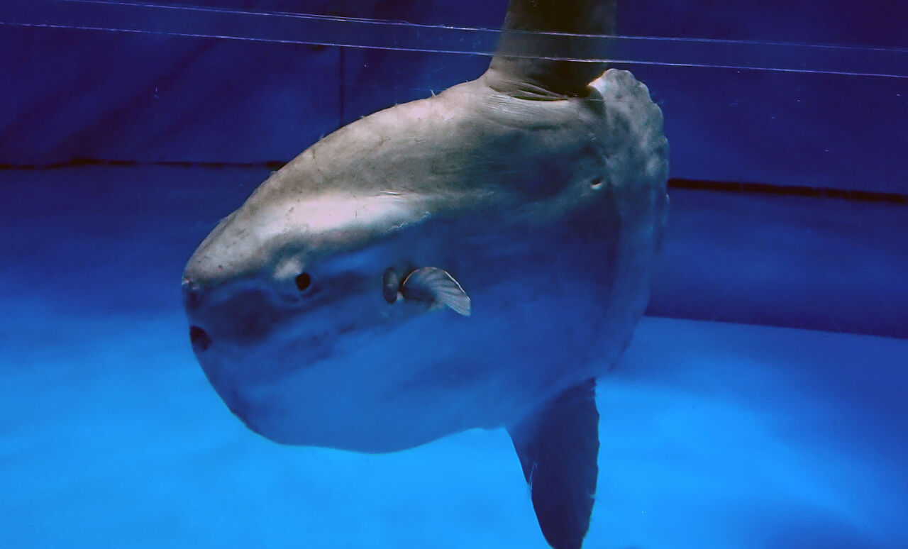 あと、大洗水族館と言えばマンボウ。衝突防止のビニールに囲まれた水槽内に4匹いたかな。真横になってるのもいたけど、一番男前する写真を掲載。