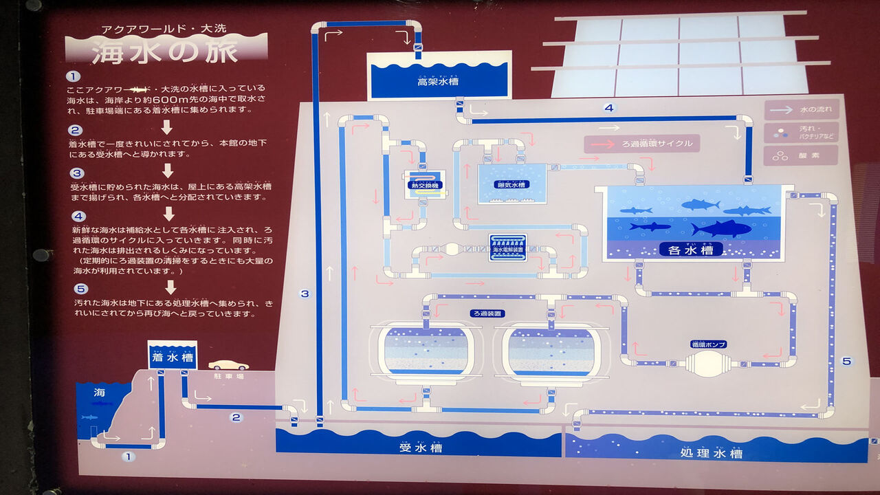 水族館の裏側、凄い機器だらけで、よくテレビとかでもバックヤードは映りますが、これは実際に見ないと凄さは伝わらないかも。というか、命を守るためには、ここまで大がかりな設備が必要なんですねぇ…