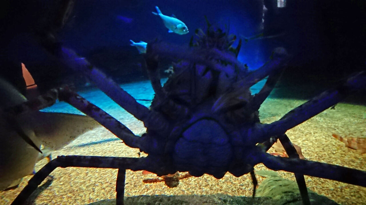 あと、深海系の展示。タカアシガニ、結構ガシガシと動いてましたが、いや、あの、あんた近すぎて写真撮れないやん。フラッシュ焚くワケにもいかないし…。
