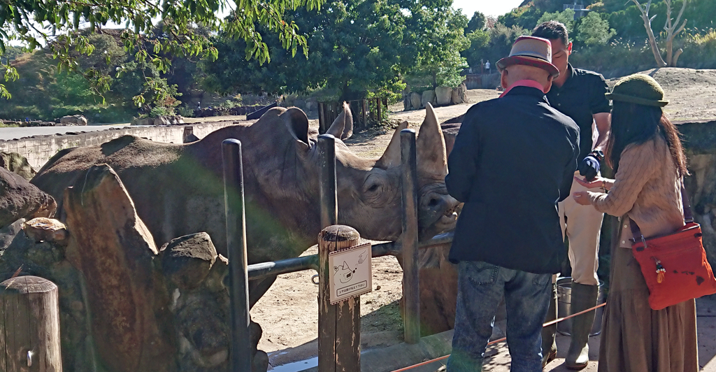 サイにも餌やり出来るみたいで、なんとなんとのこの近さです。サイって猛獣の扱いじゃなかったでしたっけ(唖然