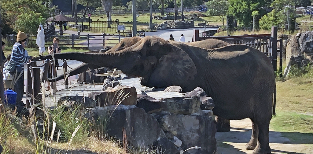 一周は 3-4km ぐらいでしょうか。途中で象の餌やり(要事前予約)だとか、キリンやシマウマだとか、…えっと、鹿っぽいヤツがどう見ても園の外に居るんですが大丈夫なんですかね、コレ^^;