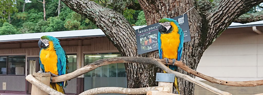 大きいルリコンゴウインコもいたのですが、この子たち、普通にそこにいました。檻に入っているわけでもなければ、鎖で繋がれているわけでもなく。まあ、風切羽は切ってあるとは思うのですが、そこに普通にいました。