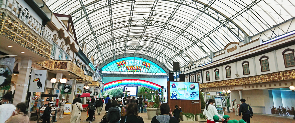 入場してみてビックリ。エントランスホールが TDL や USJ のそれです。もはや単なる動物園ではなくて、動物を題材としたテーマパークなのだと、入り口で思い知らされます。