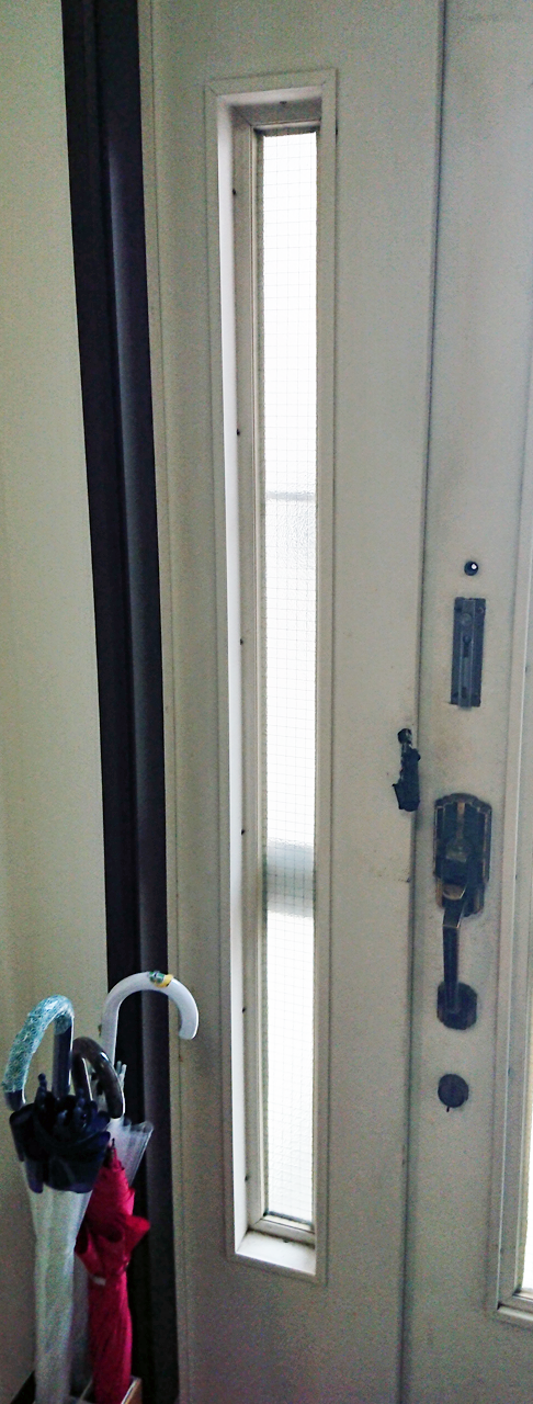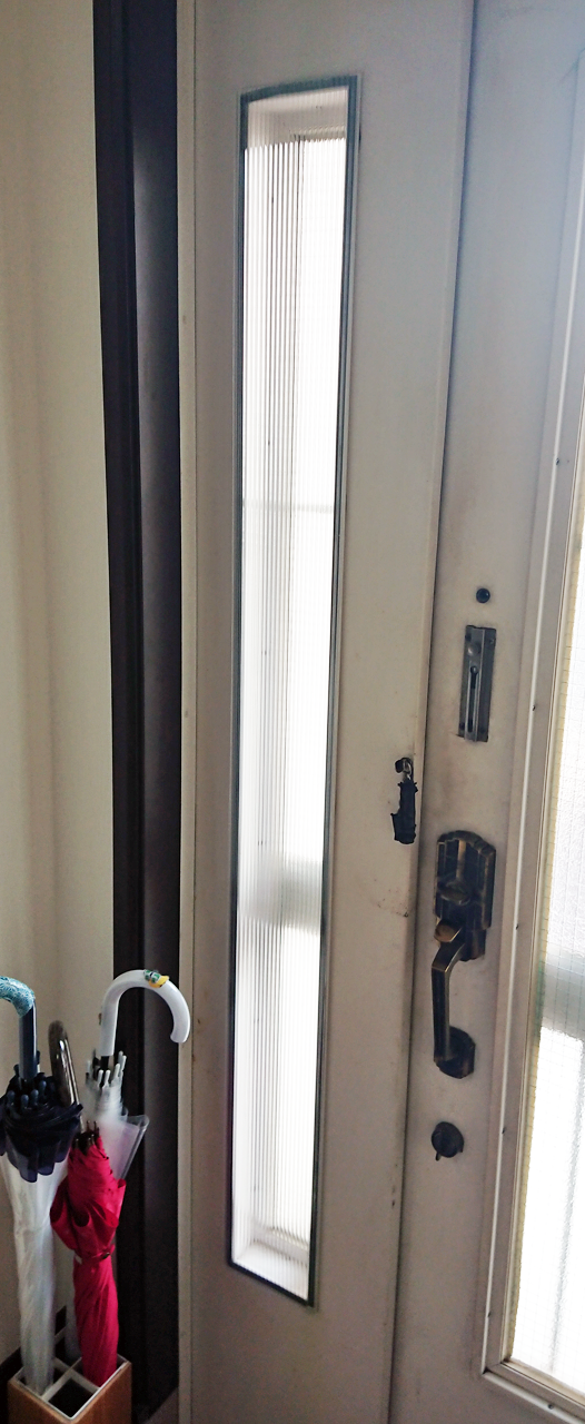 この端材をしげしげと眺めていたら、はたと気が付きました。この端材、玄関の側窓に使えるんじゃねぇのと。