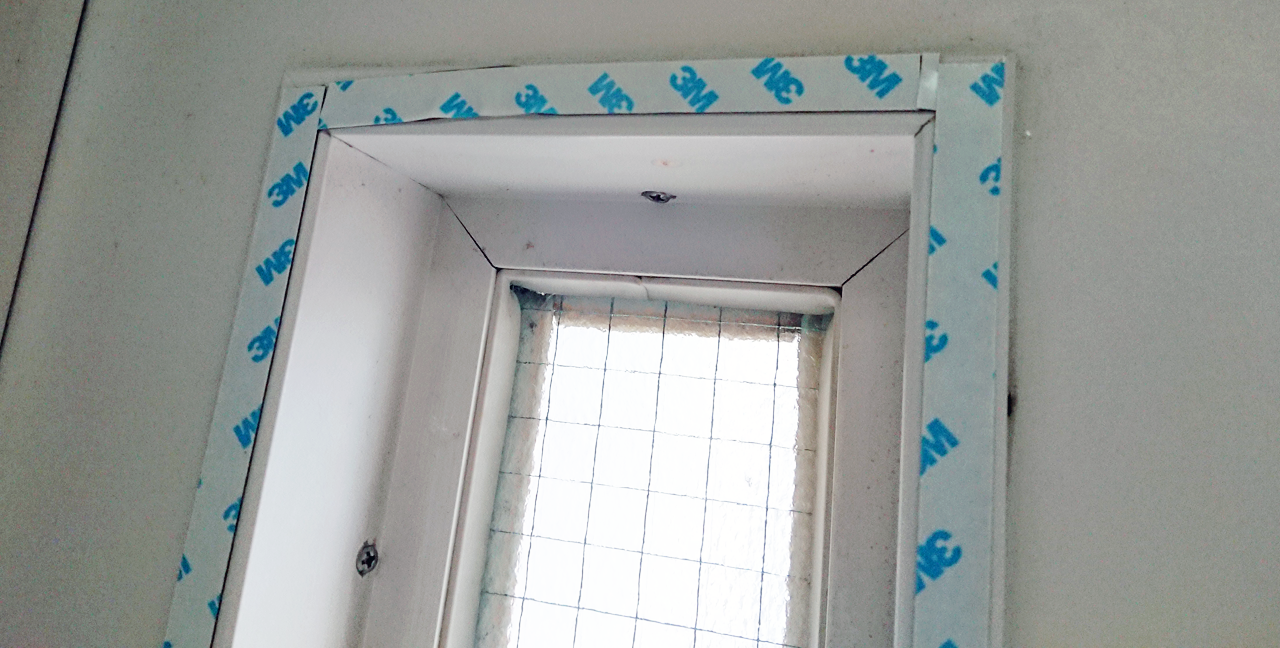 この側窓、深さがあるので、表面をポリカ板で塞ぐだけで、空気層が出来るので好都合でした。サクッと貼り付けて、こんな感じになりました。