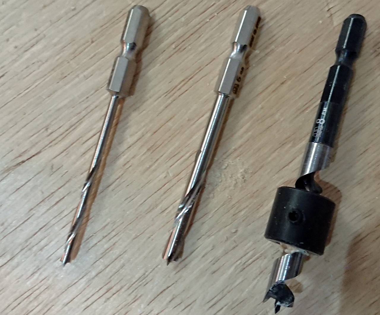 ところが 3mm から 5mm は問題なかったのですが、その後に 8mm を使ったところ、センターが暴れてまともに穴が開けられませんでした。3mm からいきなり 8mm だと綺麗に開きます。こういうところも経験なんだなあと…。あと、最初に見えなくなるところでテストしたのも良かったかなと。こうしてノウハウが溜まっていきます。
