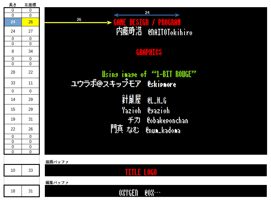 昔、ゲームプログラマを目指していた一時期がありまして、エンドロールのアルゴリズムを考えていたことがあります。