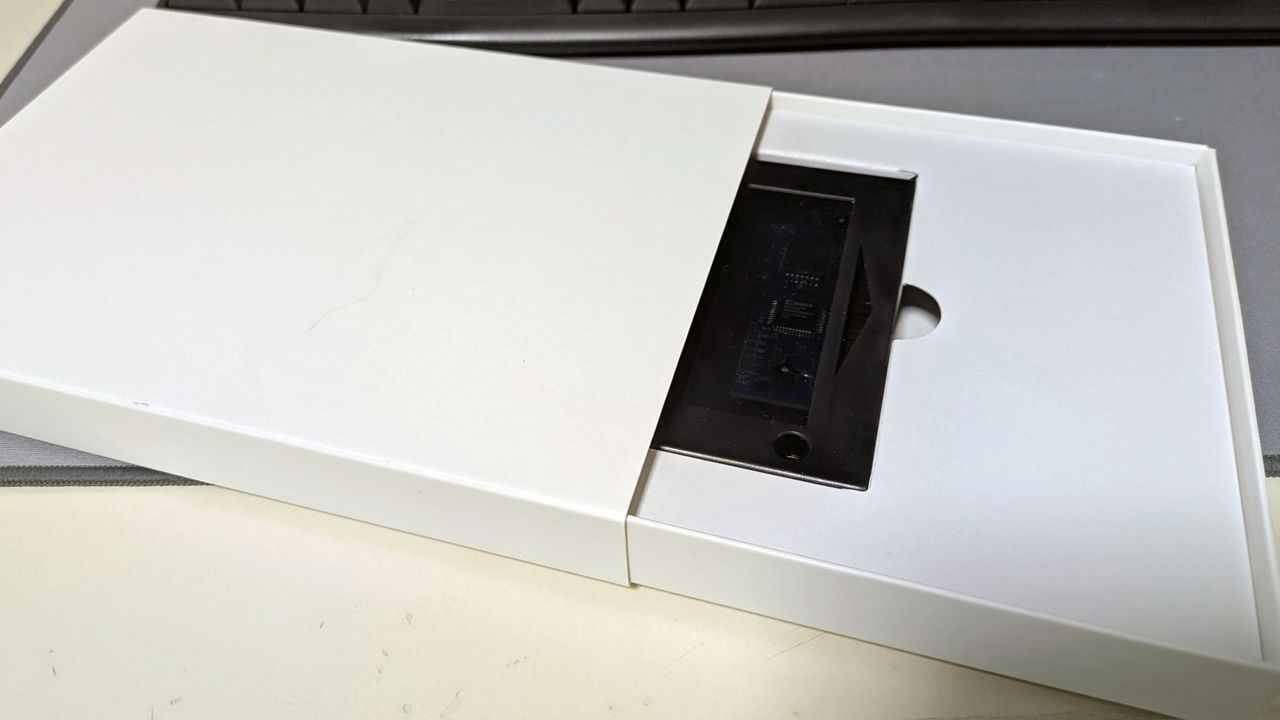 スライドさせて中を出してみました。なかなか良い感じです。ただ、届いた時は真っ白だったパッケージに早くも汚れがついてしまいましたので、片面PET貼加工で保護した上で、OPPサイドシール袋に入れて保護しようと思います。