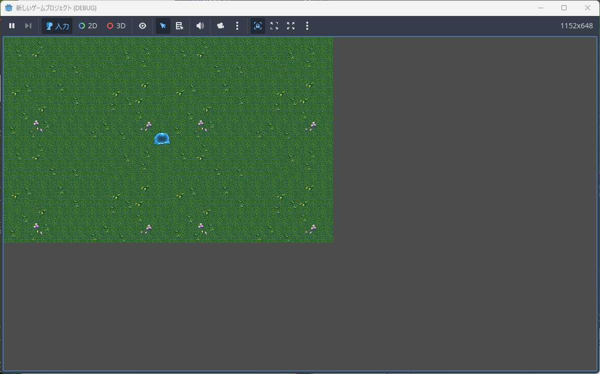 ここまでただの一度もプログラミング的なことはしてないですが、Godot システムがちゃんと処理をして、実行可能な状態に変換してくれます。では、実行確認をしてみましょう。F5 キーを押すとデバッグ実行開始です!