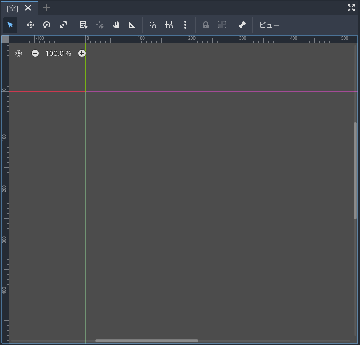 シーンの編集は 2D または 3D をクリックします。今回は 2D で説明していくので 2D をクリックすると表示がXY座標のゲージが付いた画像編集のような表示になります。