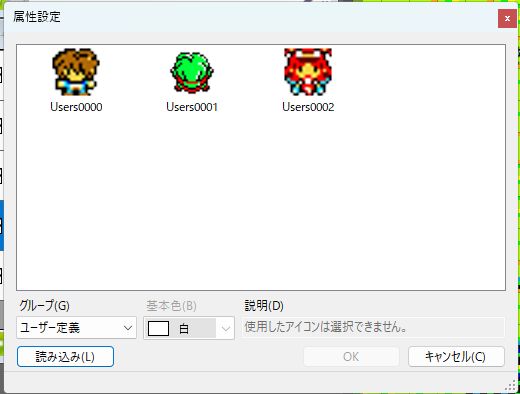 - 属性アイコン選択ダイアログで使用中のユーザー定義アイコンが並ぶように