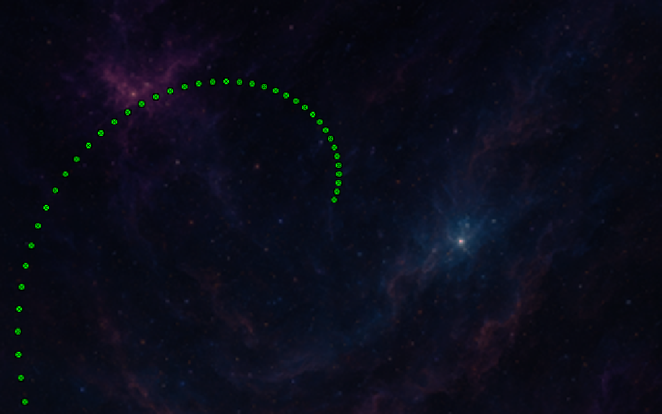 見た目を面白くするために、最初の発射角度である fire_angle を発射する度にズラしています。この角度に関してはドンドン積み重なるととんでもなく大きな値になってしまう可能性もあるので、浮動小数の剰余算計算 fmod で一周の範囲に収めるようにしています。