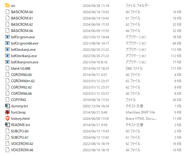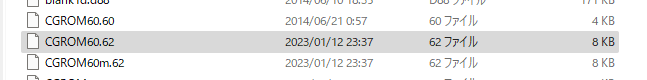 この中で CGROM60m.62 というファイルがあると思いますが、これをコピーして CGROM60.62 をダミーで作ってしまいます。