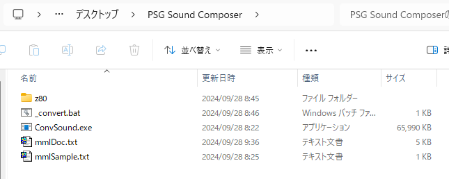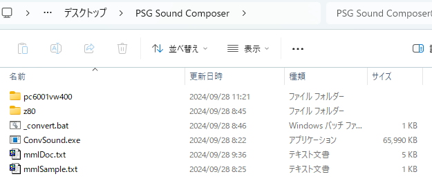最初に PSG Sound Composer アーカイブをダウンロードして圧縮を展開します。